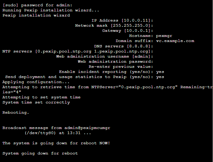 After successfully completing the wizard, the SSH connection will be lost as the Management Node reboots.