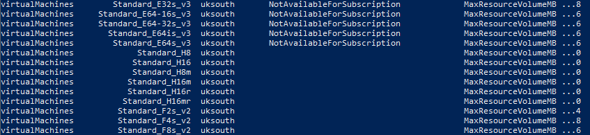 1. Run a PowerShell command in the format Get-AzComputeResourceSku | where {$_.Locations -icontains "<region name>"}