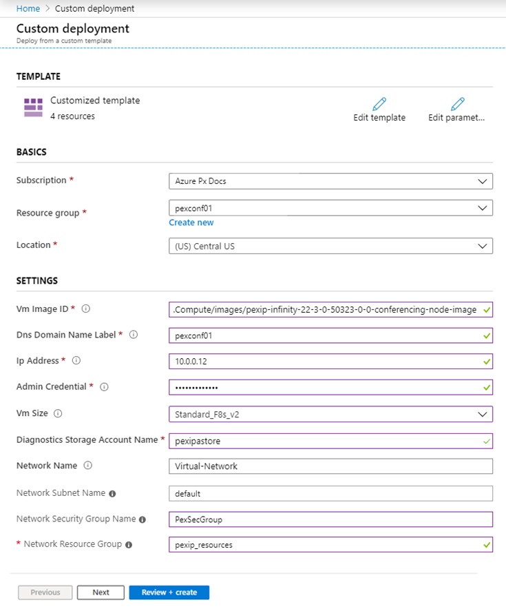 2. Deploy the instance into the new resource group. This procedure describes how to do this via the Azure portal using an ARM template provided by Pexip: