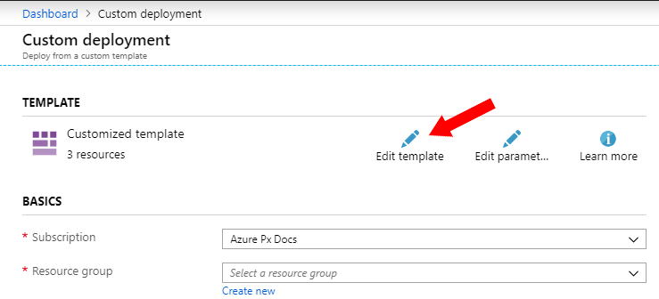 2. Edit the Pexip ARM template and add in the resource that you have identified above: