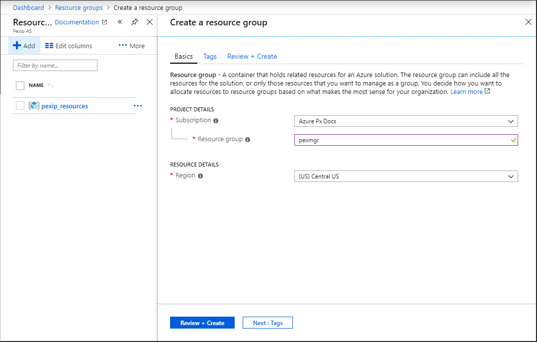 New-AzResourceGroup -Name pexmgr -Location <region name>