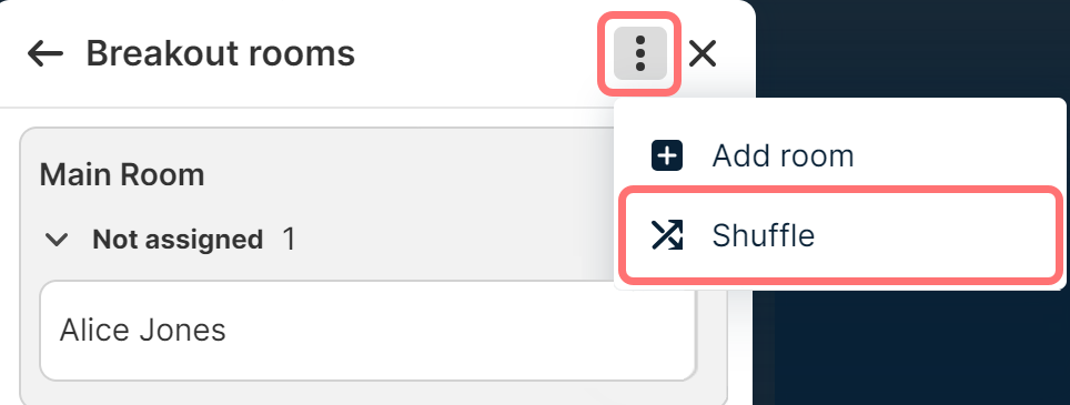 To shuffle the currently assigned participants (i.e. randomly reassign them across the existing breakout rooms), select