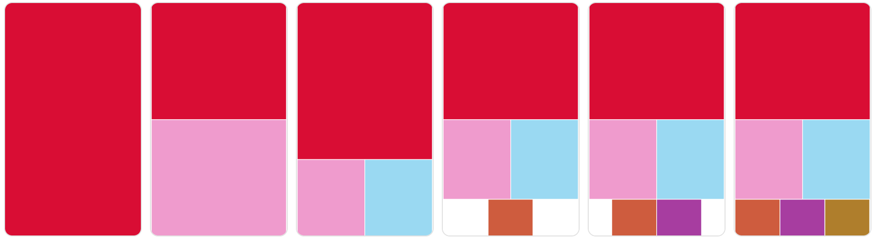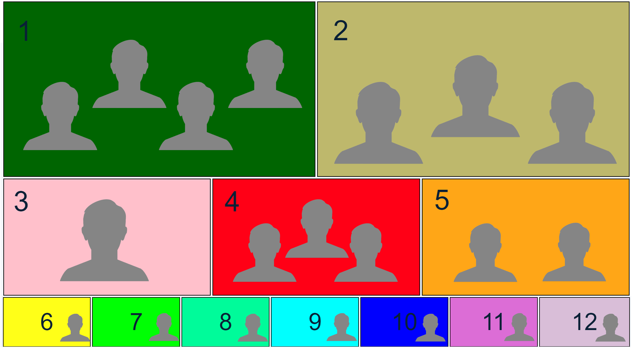 The layout displays a maximum of 6 people, and builds as shown in the images below when using the Adaptive Composition layout: