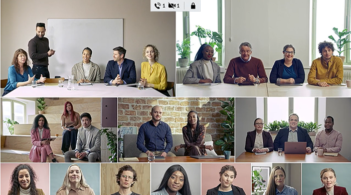 • It continuously analyzes each video feed from all participants and uses automatic face detection and framing to create an optimized view of that participant, or group of participants where there are several people in that video feed.