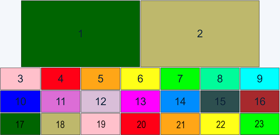 • An extended Adaptive Composition view is also available* where up to 23 video participants may be shown, initially across three rows (2/3/7 extending to 2/5/7 and then 3/5/7) and then across four rows (3/5/7/8) when required. This is a technology preview feature and it can only be enabled via the transforms functions in the Pexip client APIs (transformLayout (PexRTC client API) and transform_layout (REST client API)).