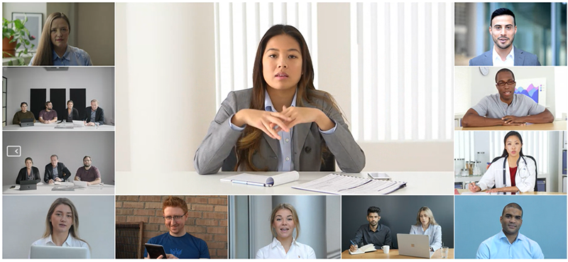 In addition to Adaptive Composition, you can select from a range of other classic layouts for your Virtual Meeting Rooms and Virtual Auditoriums. These alternative layouts do not apply any face detection or framing technologies.