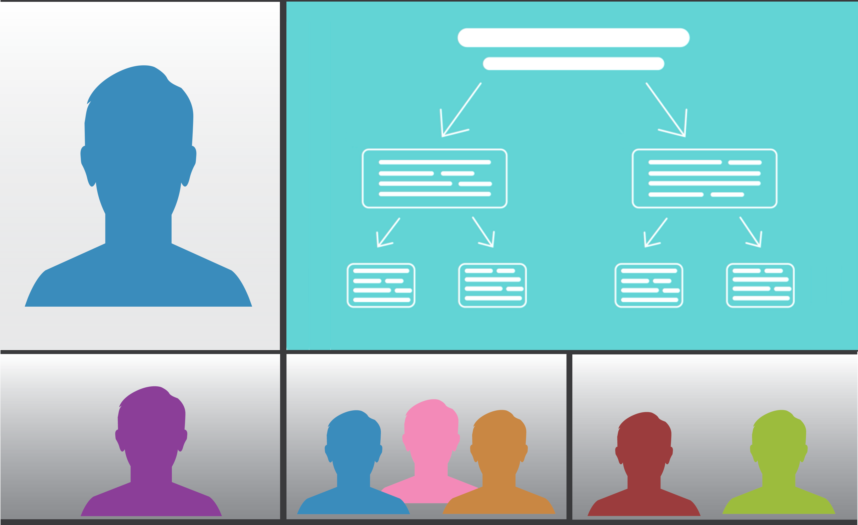 A wide range of layouts are available, including Pexip's AI-driven Adaptive Composition layout and a variety of classic layouts that have different combinations of speaker-focused and equally-sized participant arrangements. You also have the ability to define your own custom layouts. When joining Microsoft Teams conferences you also have the option of using our Teams-like layout.