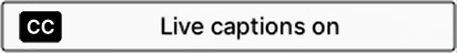 Live captions / transcription indicator. Live captions on/off messages are also temporarily displayed when captions are enabled/disabled.