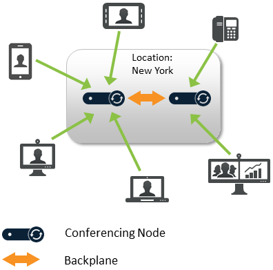 Having more than one transcoding node in a single location allows you to increase conferencing capacity and provide redundancy.