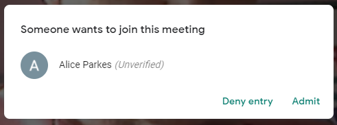 You can set up two types of access tokens in your Google Workspace account: a trusted and an untrusted token. You can use these two token types to control whether an endpoint that is routed via Pexip Infinity into a Google Meet conference is automatically admitted into the conference, or whether an existing conference participant has to explicitly admit it into the conference. When you configure Pexip Infinity, you decide which type of token to associate with the access rules and dial patterns that allow devices to be routed into Google Meet conferences.