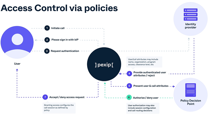 This can be extended, as shown in the next animation, to include local or external participant policy in the decision making process for finer control. This allows you, for example, to override a participant's role, alias and display name before they join a conference.