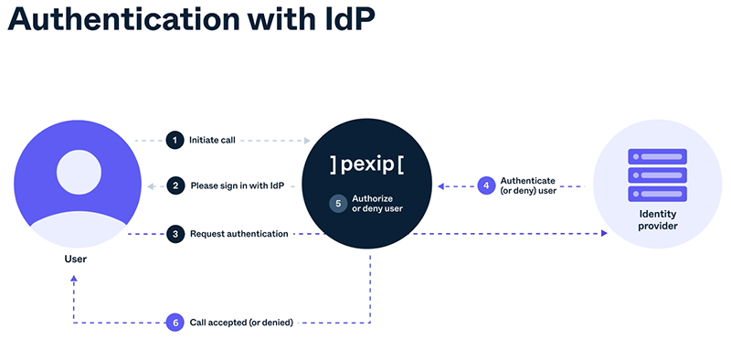 Identity Providers (IdPs) are third-party services (such as AD FS, Microsoft Entra ID or Okta) that store and manage digital identities, and with which users authenticate using SSO. Pexip Infinity supports Identity Provider SSO authentication for participant access to VMRs, and for client application registration.
