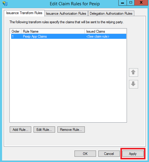 7. You are returned to the Issuance Transform Rules tab. Select Apply.