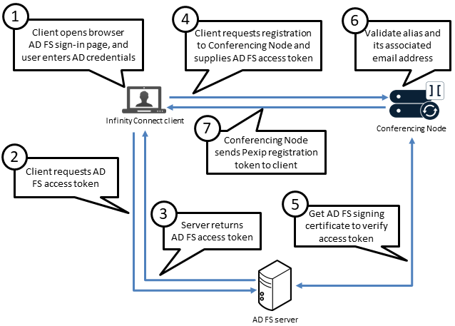 This topic explains how to configure AD FS and Pexip Infinity to enable users to register their clients using their AD FS credentials. It covers: