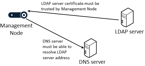 Note that the Management Node's server certificate does not have to be trusted by the LDAP server (unless the LDAP server has been explicitly configured to demand a client certificate).