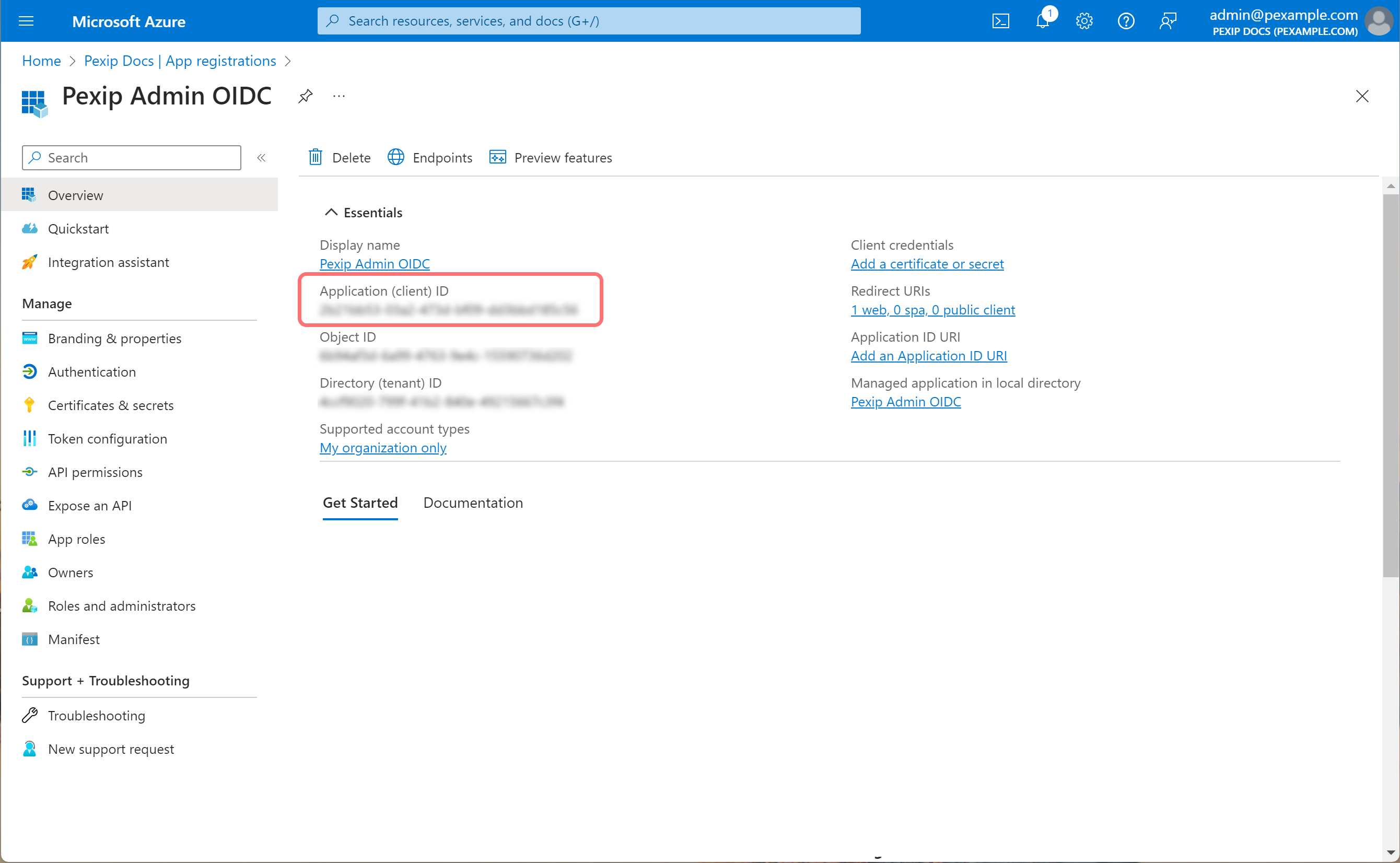 Note the Application (client) ID. You must enter this as the Client ID when configuring Pexip Infinity: