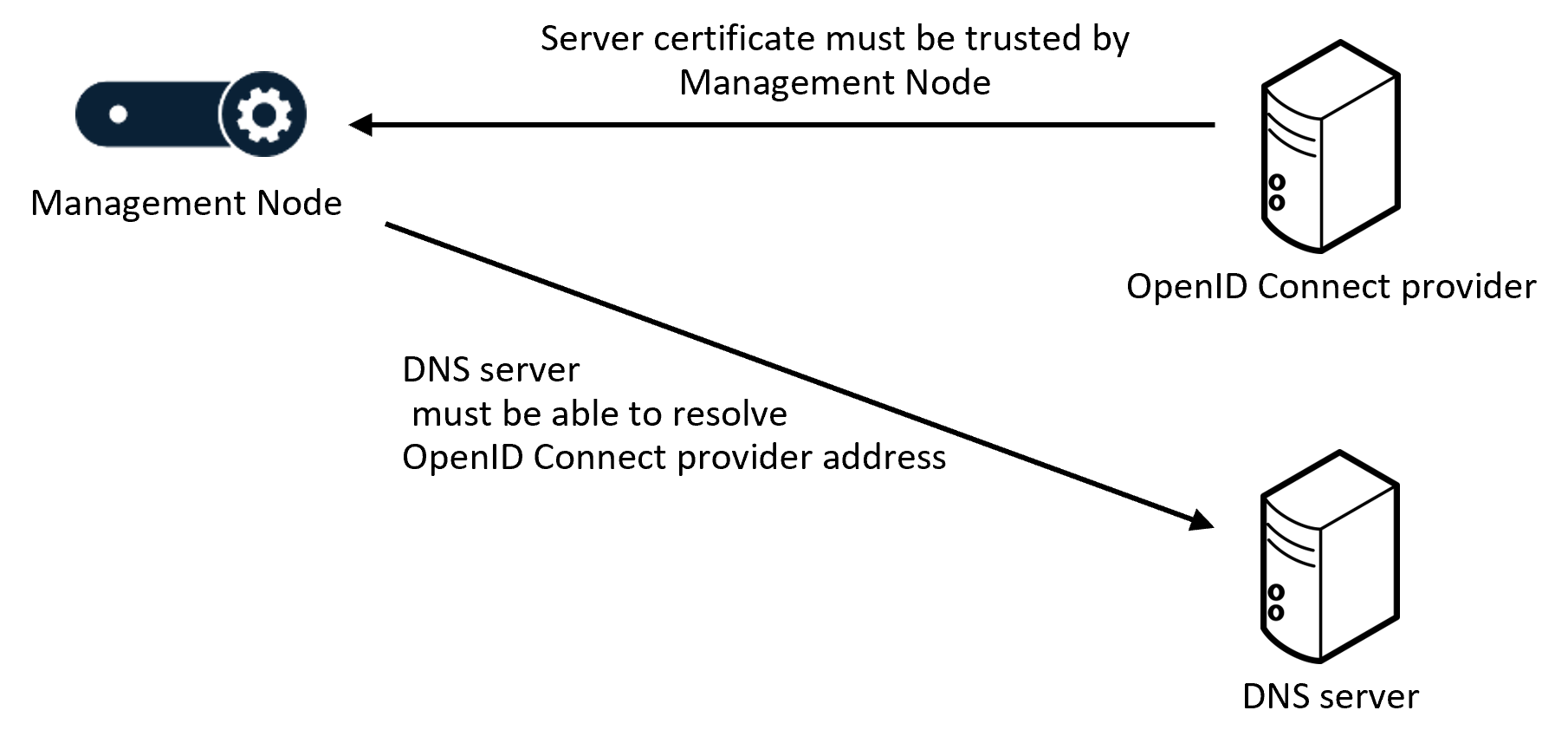 Note that the Management Node's server certificate does not have to be trusted by the OIDC provider (unless the OIDC provider has been explicitly configured to demand a client certificate).
