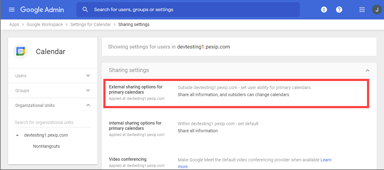 This topic describes how to configure Google Workspace in order to implement Pexip Infinity's One-Touch Join feature in a Google Workspace environment.