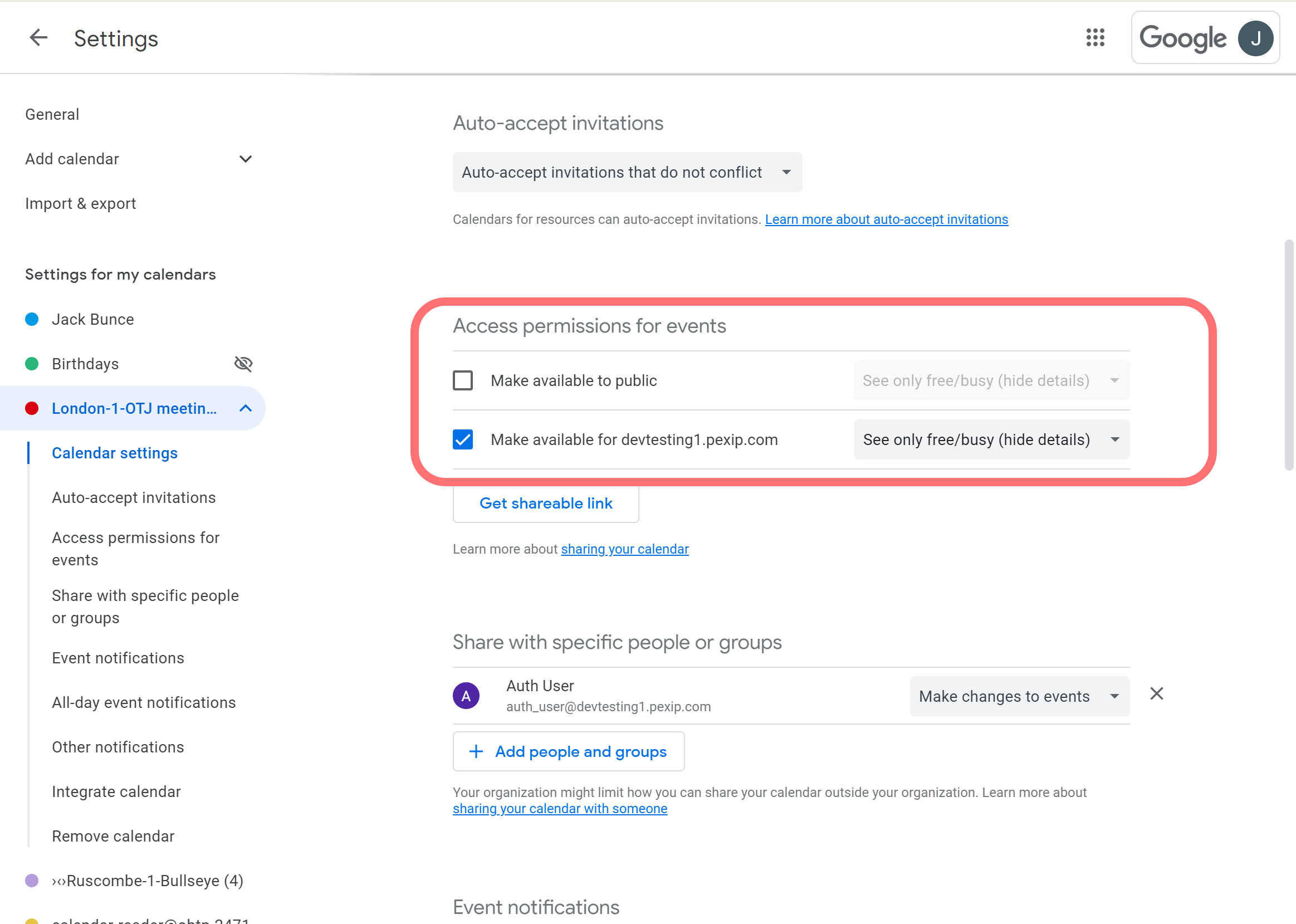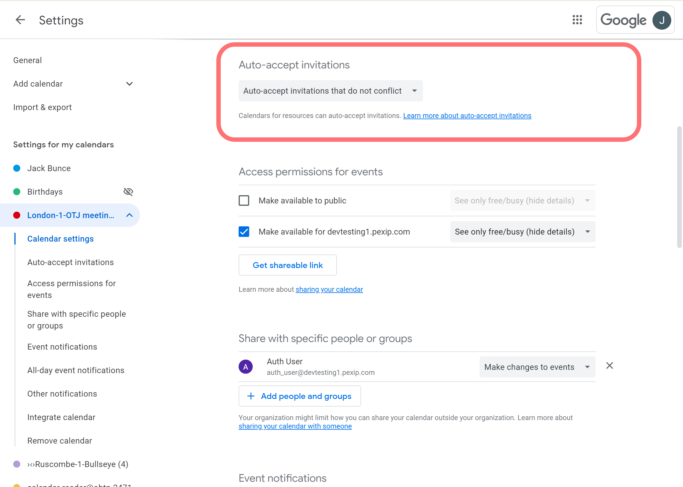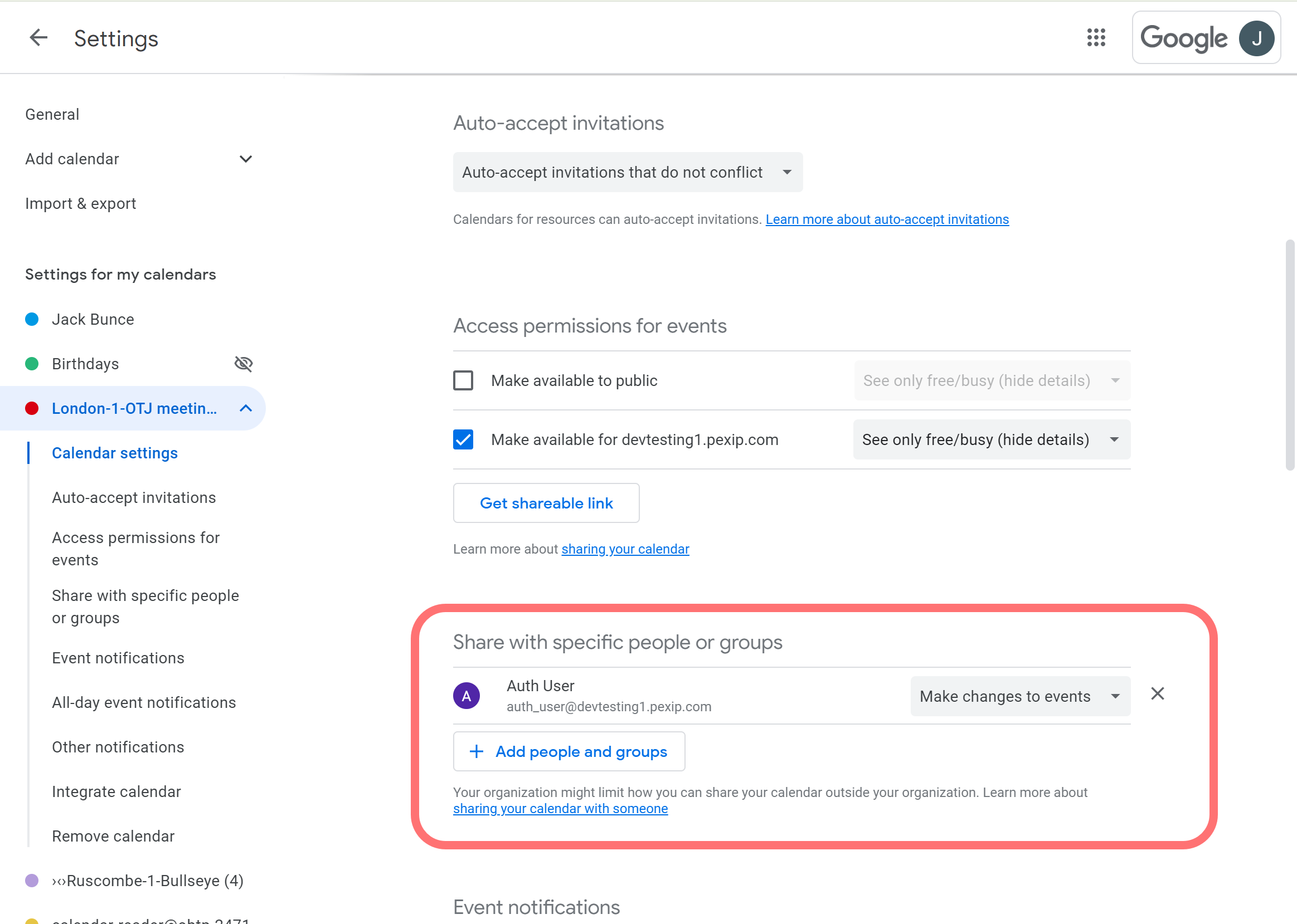 You must have already created a user account specifically for use as the Google Workspace authorization user. This user account does not need to have any special privileges; as part of the configuration described below you grant this user access to all the One-Touch Join room resource calendars.