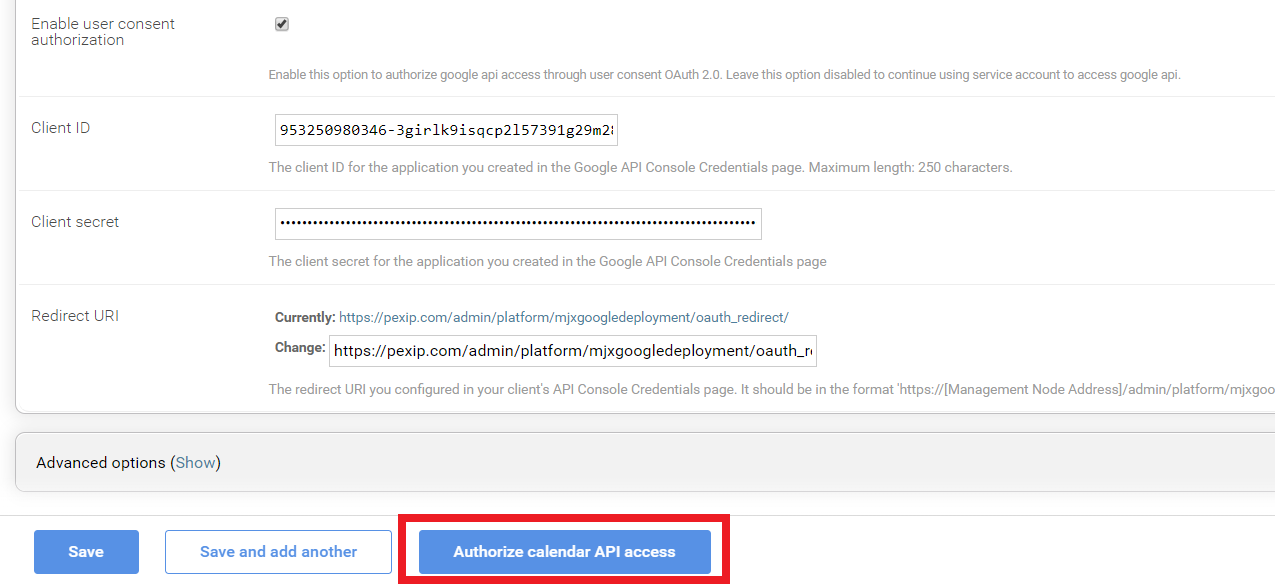 You must now configure the remainder of the One-Touch Join components on Pexip Infinity, as described in Configuring Pexip Infinity for One-Touch Join.