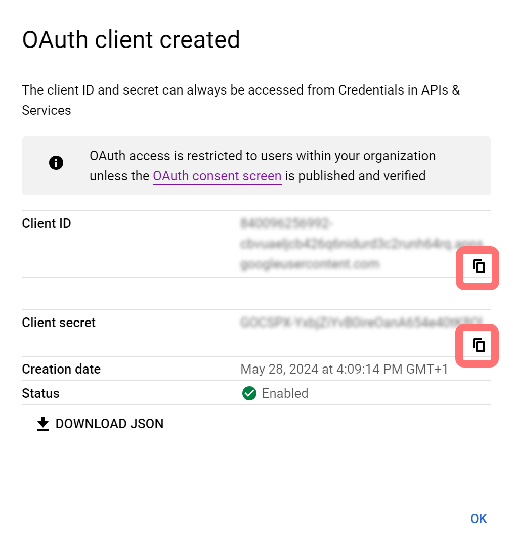 This topic describes an alternative method to configuring Google Workspace for One-Touch Join in environments where the recommended method of using a service account for authorization is not desirable. This alternative method uses a domain user for authorization (referred to as the "authorization user"), which authenticates to Google Workspace using 3-legged OAuth.