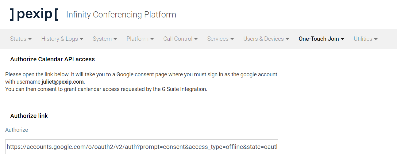 6. Adding a One-Touch Join Google Workspace integration on Pexip Infinity.