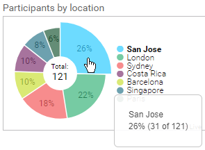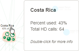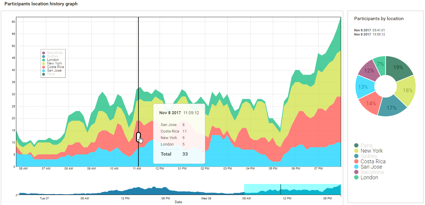 You can interact with the graphs and charts by hovering your mouse pointer over each item to view specific information on each location, node and conference. You can also drill down to view more detailed current and historical information.