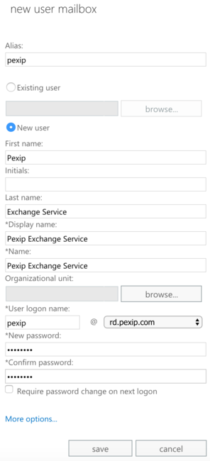 You need to provide the authentication credentials of this service account when configuring Pexip Infinity to integrate with a Microsoft Exchange deployment.
