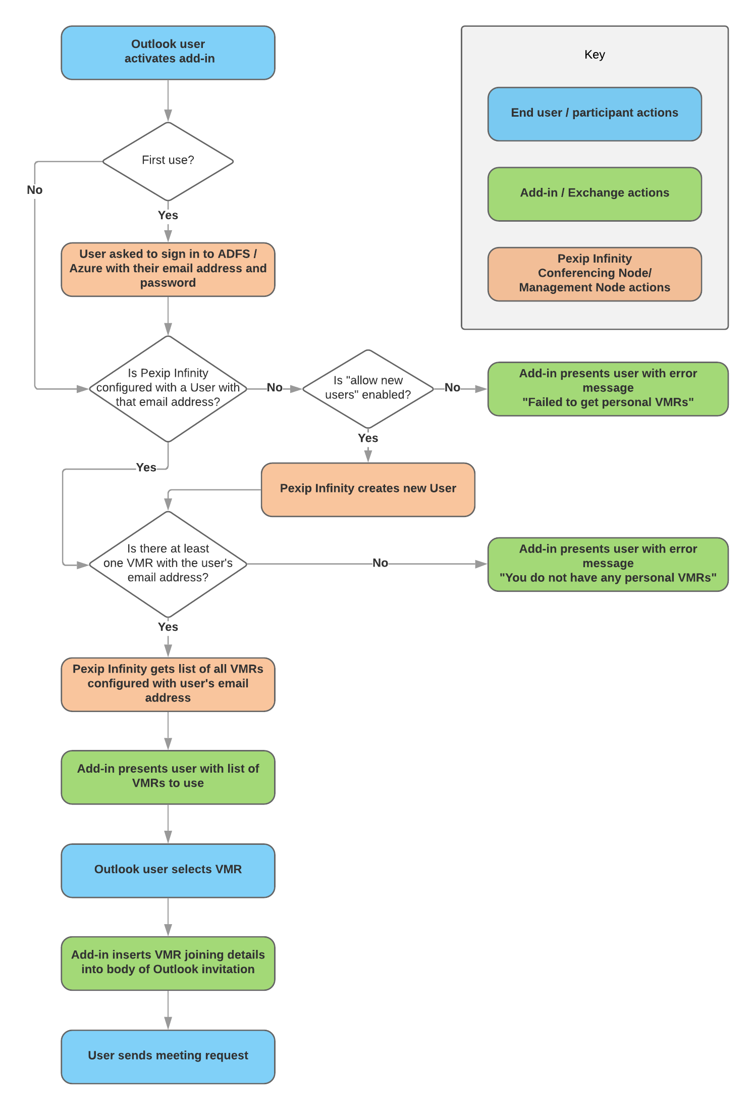 The Secure Scheduler for Exchange feature (previously known as VMR Scheduling for Exchange) allows you to create an add-in that enables Microsoft Outlook users in Office 365 or Exchange environments to quickly and easily add a Pexip VMR to their meeting invitations, enabling any meeting to be held over video.