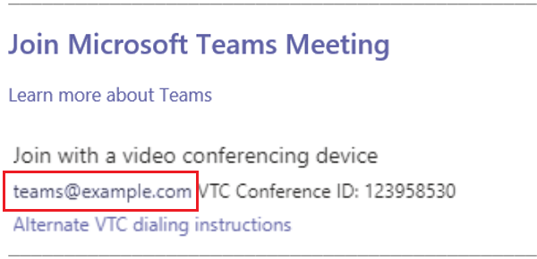 • Enterprise-based SIP devices, H.323 devices and Pexip apps can call into Microsoft Teams conferences (or other Pexip Infinity services) using aliases in the format <alias>@example.com and <alias>@vc.example.com.