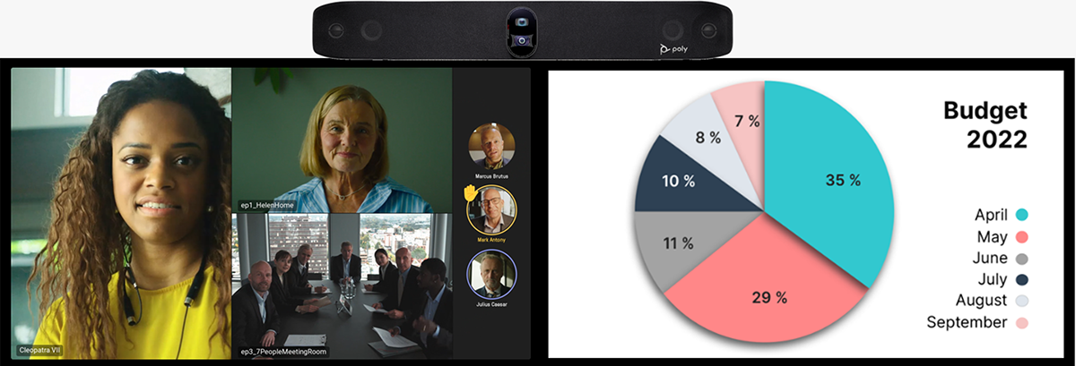• Single and dual screen systems for meetings and content sharing.