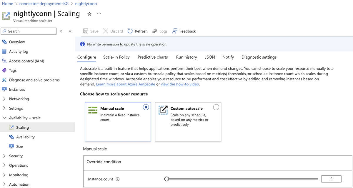 - Manually configure the current number of instances via the Azure portal, when you want to adapt to changing capacity requirements.