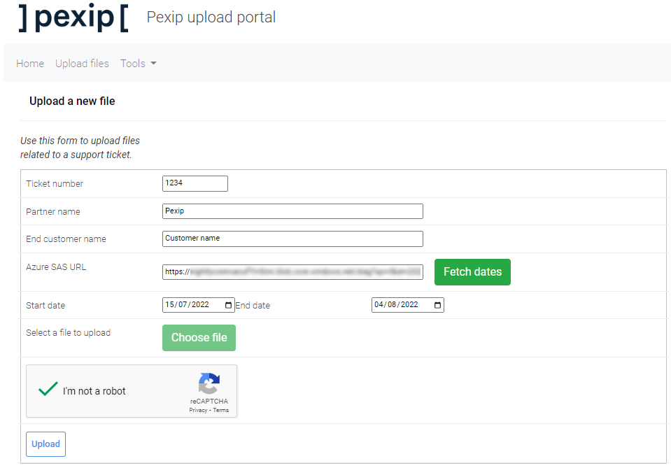 Ticket number Enter your support ticket number. Azure SAS URL Paste in here the Blob SAS URL from the Azure portal and select .