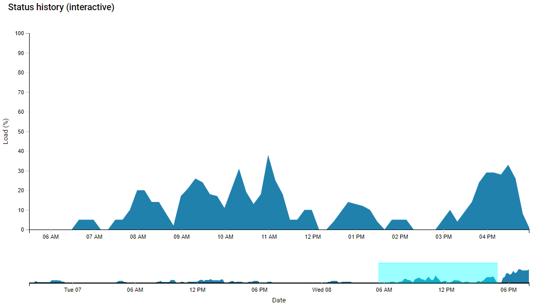 You can view details of all of your current Conferencing Nodes, including an interactive Conferencing Node status chart showing the load history for that node. You can also review a list of historic events (such as starting or stopping cloud bursting nodes) that have occurred on your Conferencing Nodes.