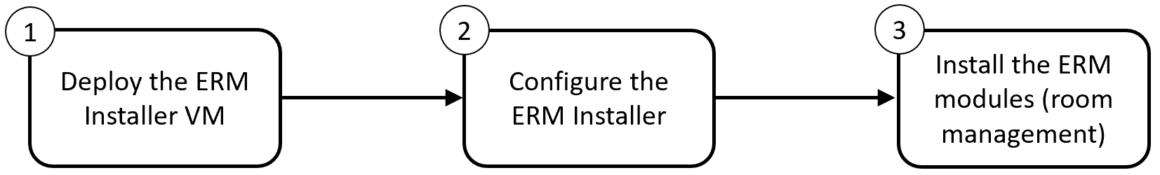 The Enhanced Room Management installation and deployment process involves three main steps: