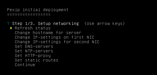 | Refresh status | Run this to see the current status of the machine, such as which IP number has been assigned via DHCP, as well as disk space and usage, which can both be helpful during installation. |