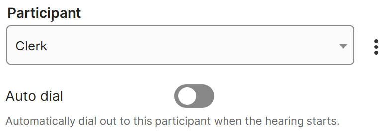 If the participant is configured with a Dialout alias then an Auto dial option appears. If Auto dial is enabled the system will automatically dial out to this participant alias when a Host participant joins the hearing.