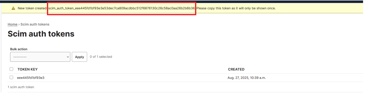 The key starts with scim_auth_token_ and is displayed only once. You need to copy the whole key.