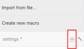 4. In the Macro Editor, select Import from file and select the settings file (e.g. settings.js) that you downloaded earlier.
