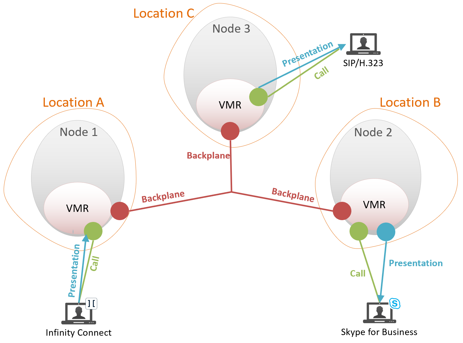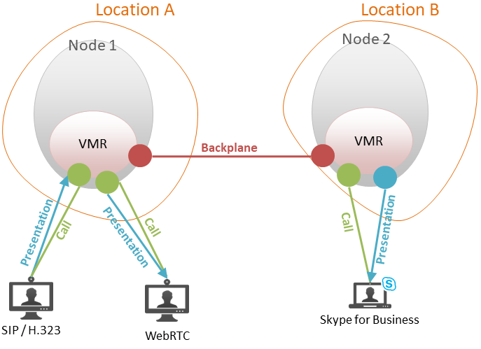 Single distributed VMR (standards-based, WebRTC and SfB endpoints)