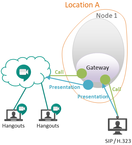Single non-distributed gateway call (standards-based endpoint to Google Meet)
