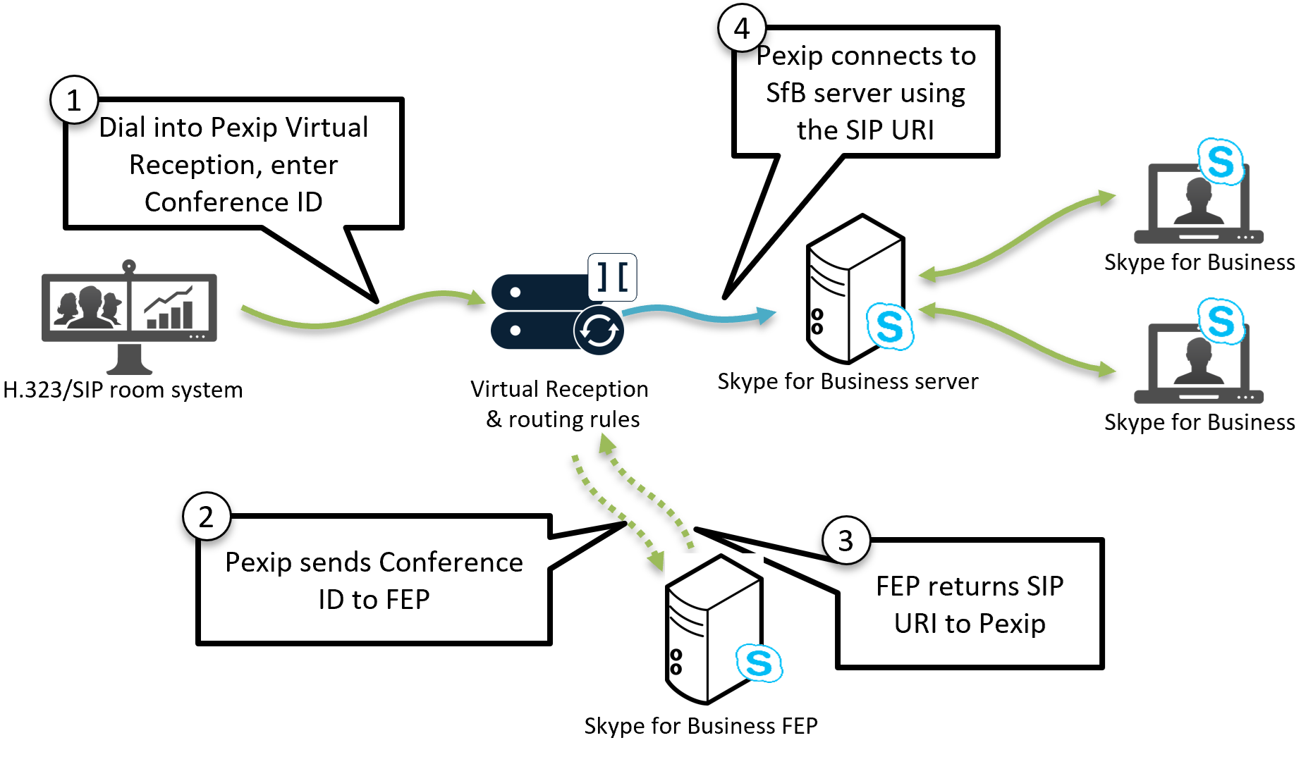 - A Virtual Reception configured specifically to handle SfB meetings.